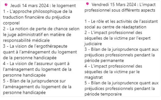 - Maître Pamela ROBERTIERE, avocat spécialiste en droit du dommage corporel au Barreau de PARIS, a particulièrement insisté sur l’intérêt du bilan fonctionnel réalisé par le kinésithérapeute ;